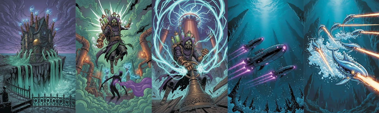On Lore Machine, Worlds are story ecosystems containing an origin LORE and story physics made up of characters, locations, art style and narrative. Anyone can jump into a World and contribute to its canon. A brand-new user recently built The Alchemist’s Aviary, that takes you inside the malfunctioning mansion of Mad Scientist Professor Ommagon. Dive into the world here. Check out a remix - with laser dolphins - here.